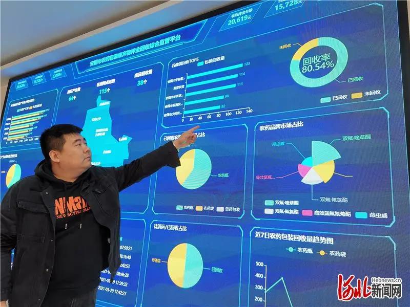 在安國市農(nóng)業(yè)農(nóng)村局信息中心的電子大屏上,全市及各農(nóng)資門店的農(nóng)藥銷售數(shù)量、農(nóng)藥包裝廢棄物回收數(shù)量、運輸車輛的軌跡等數(shù)據(jù)實時更新。劉鵬說,3月1日正式啟用的農(nóng)藥包裝廢棄物押金制回收信息系統(tǒng),覆蓋115家農(nóng)資經(jīng)營門店,全市農(nóng)藥從銷售到包裝廢棄物回收、轉(zhuǎn)運全流程可監(jiān)控、可追溯。1個月時間,通過該系統(tǒng)回收農(nóng)藥包裝廢棄物1.23噸,回收率達85%。
