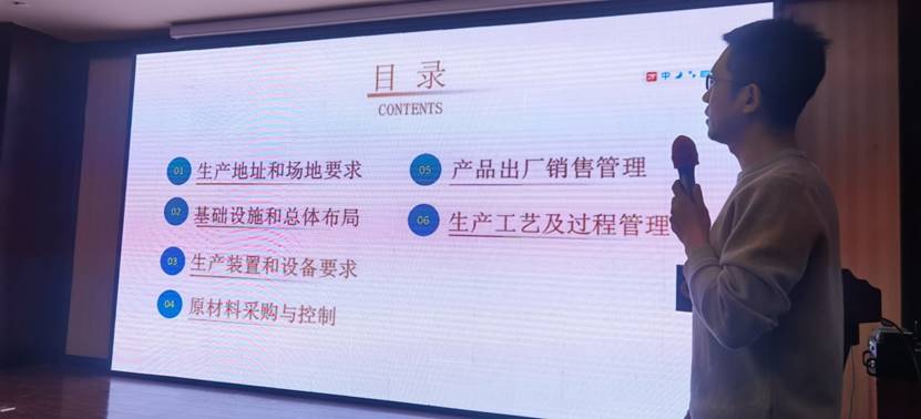 河北省農(nóng)藥檢定監(jiān)測總站劉東曉科長為參訓人員作了“農(nóng)藥生產(chǎn)許可審查生產(chǎn)工藝部分常見問題”的專題培訓,從生產(chǎn)地址和場地要求、基礎(chǔ)設施和總體布局、生產(chǎn)裝置和設備要求、原材料采購與控制