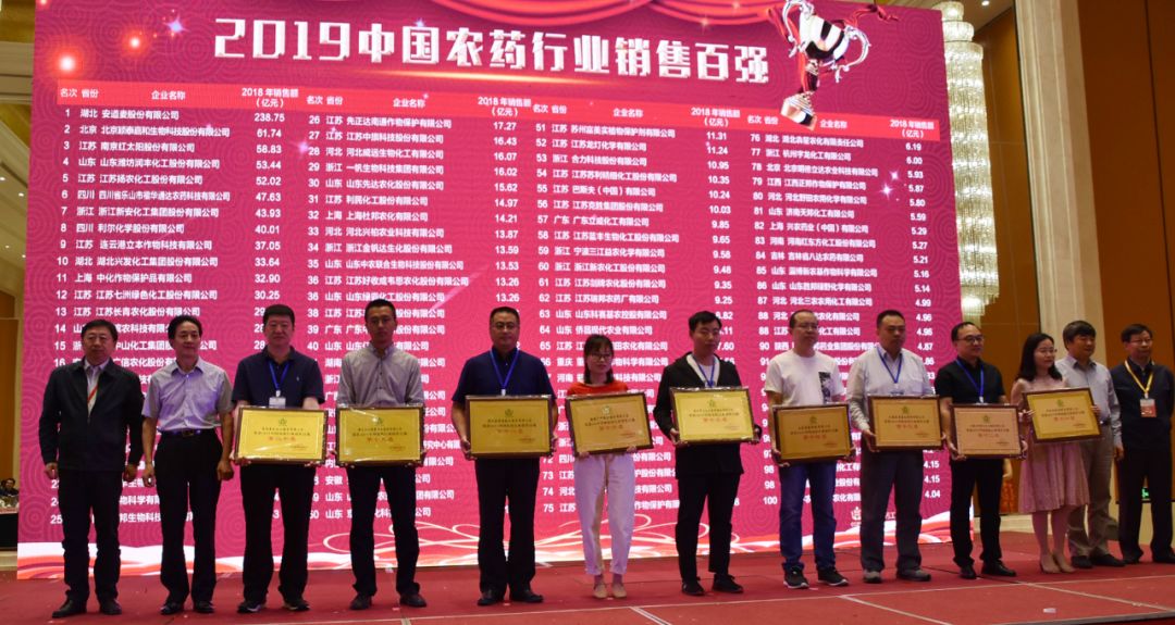 5月15日,安徽合肥,2019中國農(nóng)藥行業(yè)銷售百強企業(yè)榜單在“第六屆農(nóng)藥行業(yè)經(jīng)濟運行分析會暨農(nóng)化行業(yè)排行榜發(fā)布會”上隆重揭曉。安道麥股份有限公司以238.75億元的銷售額獨占鰲頭,北京穎泰嘉和生物科技股份有限公司及南京紅太陽股份有限公司分別以61.74億元和58.83億元的銷售額,位居榜眼和探花之位。