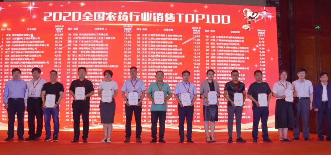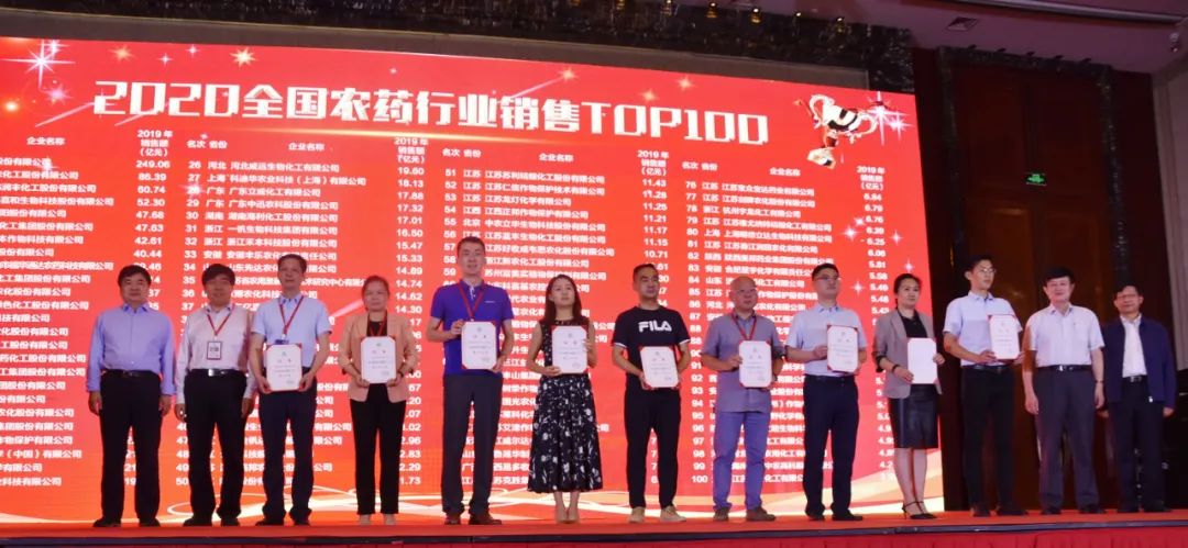 6月10日,山東青島,2020全國農(nóng)藥行業(yè)銷售TOP100在第七屆農(nóng)藥行業(yè)經(jīng)濟(jì)運(yùn)行分析會暨農(nóng)藥行業(yè)排行榜發(fā)布會上隆重揭曉。安道麥股份有限公司以249.06億元的銷售額蟬聯(lián)榜首。江蘇揚(yáng)農(nóng)化工股份有限公司連升3名,以86.39億元的銷售額排名第二,山東濰坊潤豐化工股份有限公司以60.74億元的銷售額排名第三。