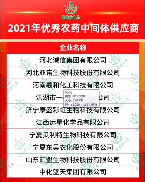 7月7日,浙江紹興,2021年農藥行業優秀供應商名單在第九屆農藥行業經濟運行分析會暨2022農藥行業名單發布會上揭曉。