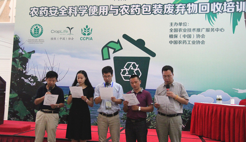 中國農藥工業協會安全科學使用農藥委員會攜手成員單位海利爾藥業集團股份有限公司、山東科信生物化學有限公司、山東科賽農控股有限公司、拜耳作物科學(中國)有限公司、先正達(中國)投資有限公司5家代表企業發出倡議,希望更多業內人士能夠參與到“農藥安全科學使用與農藥包裝廢棄物回收”的工作中來,讓安全用藥與農藥包裝廢棄物回收再利用工作能夠持久深入的開展下去,集各方力量,共同踐行社會責任,為農業的可持續發展而努力。