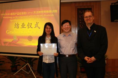 會議為時3天,現(xiàn)場氣氛活躍,學(xué)員就標(biāo)準(zhǔn)和方法制定的相關(guān)問題向遠(yuǎn)道而來的授課專家咨詢。培訓(xùn)結(jié)束后,參會學(xué)員獲得由中國農(nóng)藥工業(yè)協(xié)會、CIPAC、JMPS聯(lián)合頒發(fā)的結(jié)業(yè)證書。本次會議由中國農(nóng)藥工業(yè)協(xié)會夏烽副秘書長主持,農(nóng)業(yè)部農(nóng)藥檢定所宋俊華高級農(nóng)藝師和杭州宇龍化工有限公司吳珊總經(jīng)理、黃潤紅主任提供現(xiàn)場翻譯。