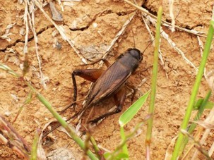 鑒別特征:屬直翅目蟋蟀科,體長20~30毫米,寬6~8毫米,觸角褐色。體色有黑褐色、黃褐色等多種,渾身油光閃亮。頭部黑色,呈圓球形,觸角窩四周黑色。前胸背板黑褐色,有左右對稱的淡色斑紋,側板下半部淡色。尾須很長,色較淺。