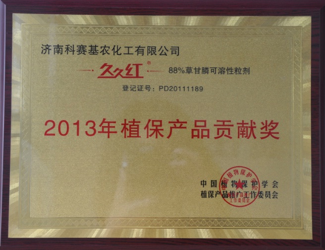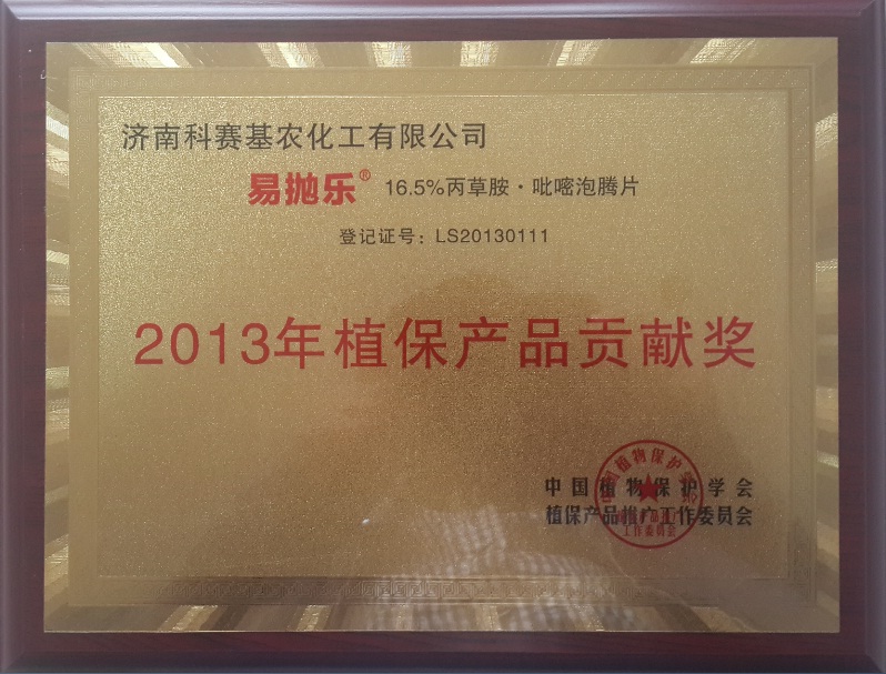 近日,濟(jì)南科賽基農(nóng)化工有限公司的久久紅(88%草甘膦可溶性粒劑)、易拋樂(lè)(16.5%丙草胺吡嘧泡騰片)榮獲“2013年植保產(chǎn)品貢獻(xiàn)獎(jiǎng)”,同時(shí)科賽基農(nóng)作物經(jīng)理蘇躍同志被授予“2013年植保產(chǎn)品推廣獎(jiǎng)”。這項(xiàng)有著“植保界奧斯卡獎(jiǎng)”盛宴,由來(lái)自農(nóng)業(yè)部農(nóng)藥檢定所、全國(guó)農(nóng)技推廣中心、中國(guó)植物保護(hù)學(xué)會(huì)以及來(lái)自地方植保系統(tǒng)的22位專(zhuān)家參與評(píng)審,最終47家企業(yè)和61個(gè)產(chǎn)品獲獎(jiǎng)。
