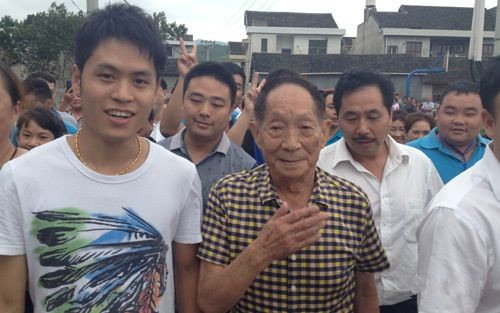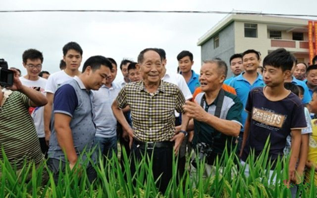 8月11日下午,中國工程院院士,中國 “雜交水稻之父”袁隆平及科研團隊,在懷化市市長、市農業局局長、溆浦縣縣委書記等人陪同下來到“國家雜交水稻研究中心超級雜交稻畝產千公斤項目” 溆浦縣攻關片基地,考察水稻長勢及病蟲害防治情況。