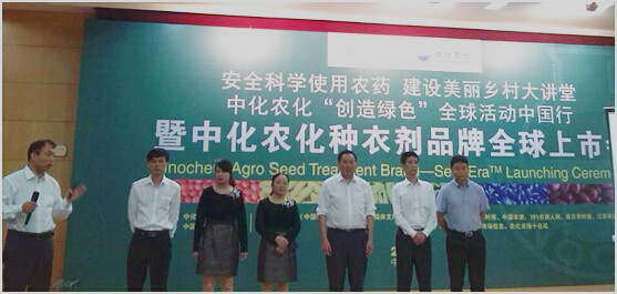 中化農化市場部副總經理王騫、中化農化種衣劑事業部副總經理劉瑞江、呂楠博士、呂楠博士圍繞安全科學使用農藥、種衣劑的發展歷程和中化農化種衣劑SeedEraTM品牌的特色等進行了詳細的講解。