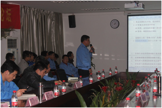 正邦生化總經(jīng)理助理曹偉對市場部戰(zhàn)略規(guī)劃作出報告,他強(qiáng)調(diào):為提高產(chǎn)品經(jīng)理的積極性,將推行產(chǎn)品利潤承包制;而在組織分工上明確重點,強(qiáng)化產(chǎn)品經(jīng)理的對作物上的專業(yè)化;外請講師以及設(shè)置內(nèi)部授課,提升市場部的整體職業(yè)水平。
