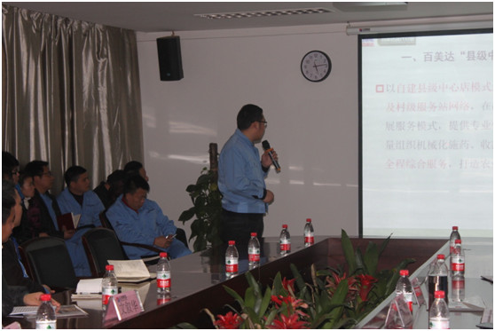 百美達(dá)總經(jīng)理史高宏就百美達(dá)縣級中心店+服務(wù)站模式和推進(jìn)計劃作出闡述。他明確:以自建縣級中心店模式進(jìn)行網(wǎng)絡(luò)建設(shè),發(fā)展鄉(xiāng)鎮(zhèn)及村級服務(wù)站網(wǎng)絡(luò),進(jìn)一步發(fā)揮公司和農(nóng)戶的橋梁作用,在此基礎(chǔ)上展開和推進(jìn)對種植大戶及合作社開發(fā)計劃,在產(chǎn)品銷售的基礎(chǔ)上同時發(fā)展服務(wù)模式,提供專業(yè)化包田包藥服務(wù),整合力量組織機(jī)械化施藥、收割等產(chǎn)前、產(chǎn)中、產(chǎn)后的全程綜合服務(wù)。