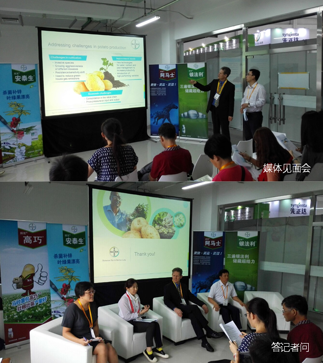 北京 中國 2015年7月28日 第九屆世界馬鈴薯大會于7月28日至30日在北京近郊延慶召開。 拜耳作物科學展示了其最新的研發(fā)成果及對于馬鈴薯產(chǎn)業(yè)可持續(xù)發(fā)展的貢獻。在“攜手創(chuàng)新 共同推進馬鈴薯產(chǎn)業(yè)發(fā)展”的主題下,來自德國總部的專家介紹了新產(chǎn)品、新方案、新方法,凸顯了拜耳在馬鈴薯領(lǐng)域的領(lǐng)先地位。