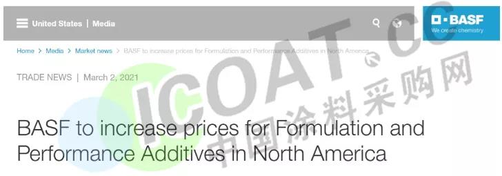 巴斯夫宣布,由于原材料成本和供應量的持續飆升,巴斯夫將在3月5日起提高亞太地區產品的價格: