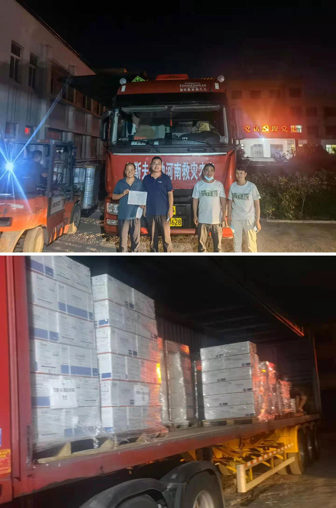 8月5日晚,捐助的產品已經順利抵達浚縣。