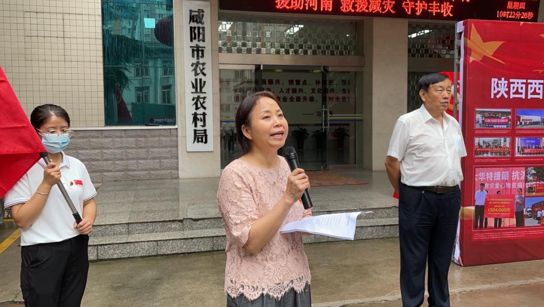 陜西省農(nóng)業(yè)檢驗(yàn)檢測(cè)中心副主任姜軍俠在儀式上致辭,她表示西大華特多年來(lái)發(fā)揮企業(yè)優(yōu)勢(shì)及責(zé)任,在抗擊疫情、抗洪救災(zāi)、脫貧攻堅(jiān)等工作中踐行初心使命,勇?lián)鐣?huì)責(zé)任,為群眾辦實(shí)事,科技下鄉(xiāng),服務(wù)三農(nóng),尤其在農(nóng)業(yè)救援減災(zāi)方面做了大量卓有成效的工作。同時(shí)希望我省農(nóng)藥生產(chǎn)企業(yè)、農(nóng)藥工業(yè)協(xié)會(huì)團(tuán)結(jié)一致,繼續(xù)為河南受災(zāi)地區(qū)進(jìn)行物資捐贈(zèng)及農(nóng)業(yè)技術(shù)支持。