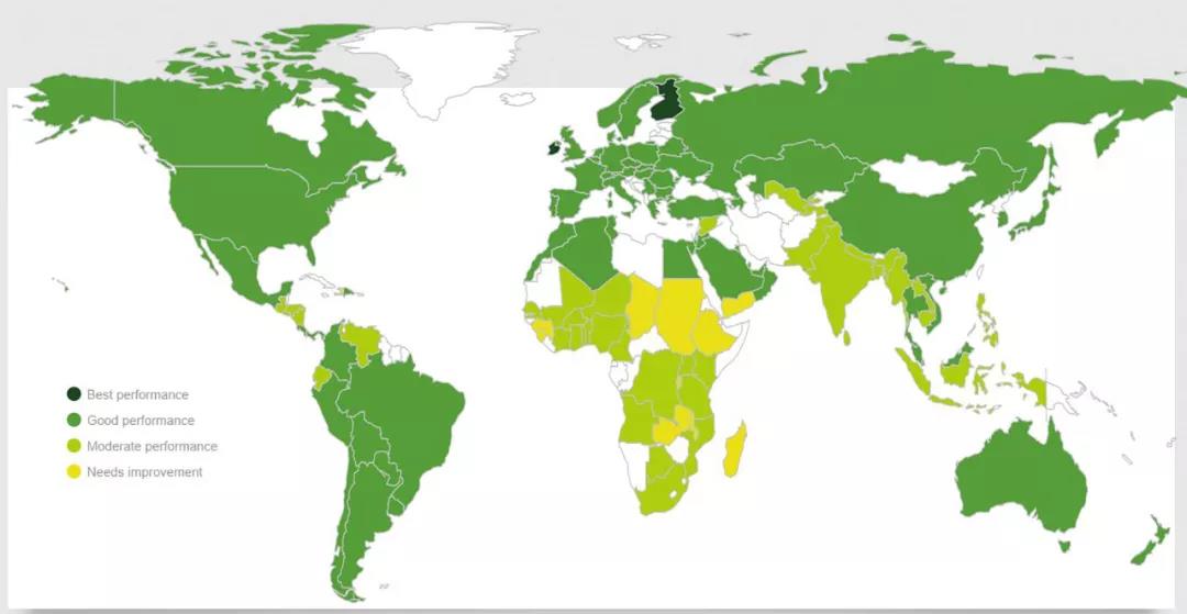 北美地區連續第三年在糧食安全方面領先世界。歐洲緊隨其后,排名前10的國家中有8個來自歐洲。按照新的計算方法,芬蘭高居榜首,而去年排名第1的新加坡跌至第19位。愛爾蘭依然位居第2,而美國則升至第11位。