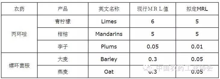 據世貿組織(WTO)消息,9月25日歐盟發布G/SPS/N/EU/136/Add.1號通報,修訂丙環唑和螺環菌胺的最大殘留限量。