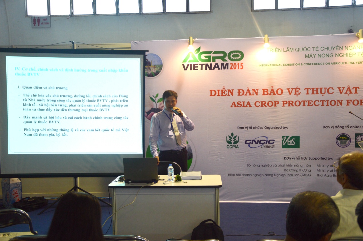 展會首日,中國農藥工業協會秘書長李鐘華博士,越南農業部植保司司長阮春鴻先生,越南農業部作物生產司司長范文游先生,越南農業部生產司副司長陳春銀先生,泰國農商聯合會主席 Weerawooth katanayukul博士,柬埔寨農林漁業部Rinda女士和越南農藥協會就各地的農藥登記政策、作物分布、用藥情況、進出口貿易等內容做了精彩報告。