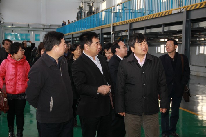 山東省農藥工業協會會長許輝(前排左二)向中國農藥工業協會會長孫叔寶介紹相關情況