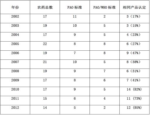 2002-2012國際農藥標準申請情況