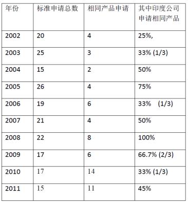 印度公司申請相同產品情況