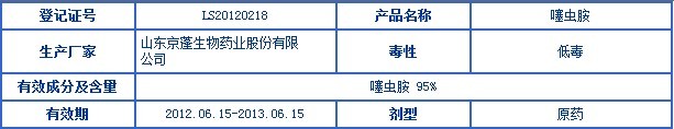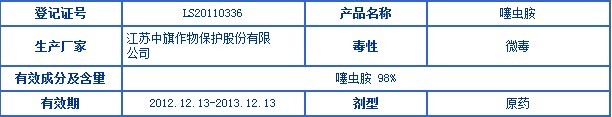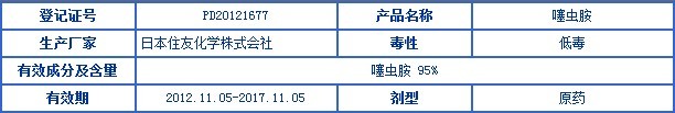 11月5日,日本住友化學在中國成功登記殺蟲劑噻蟲胺原藥,成為在中國的第一家取得該原藥正式登記的外國企業。另外,還有四家中國企業持有該藥的臨時登記,分別是山東京蓬生物藥業股份有限公司、河北威遠生物化工股份有限公司、湖南比德生化科技有限公司以及江蘇中旗作物保護股份有限公司。