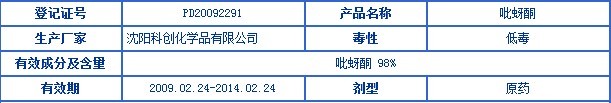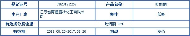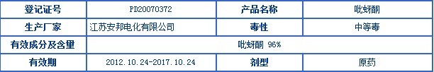 10月24日,江蘇安邦電化有限公司繼沈陽科創(chuàng)化學(xué)品有限公司和南通施壯化工有限公司之后,成為國內(nèi)第三家持有吡蚜酮原藥正式登記證的企業(yè)。除這三家國內(nèi)企業(yè)外,瑞士先正達(dá)作物保護(hù)有限公司2008年10月已經(jīng)獲得該原藥的正式登記。