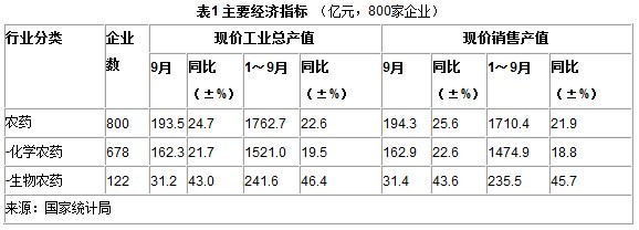 根據中國國家統計局統計,2012年1~9月,全國農藥行業800家規模以上企業累計完成現價工業總產值1762.7億元,同比增長22.6%,其中生物源農藥同比大幅增長46.4%。