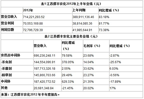 2012年上半年,農(nóng)藥行業(yè)市場(chǎng)需求穩(wěn)步復(fù)蘇,大宗化工原料在相對(duì)低位區(qū)域運(yùn)行。江蘇輝豐農(nóng)化股份有限公司(以下簡(jiǎn)稱“輝豐農(nóng)化”)搶抓市場(chǎng)機(jī)遇,強(qiáng)化內(nèi)部管理,充分發(fā)揮主導(dǎo)產(chǎn)品產(chǎn)能優(yōu)勢(shì)和品牌優(yōu)勢(shì),生產(chǎn)經(jīng)營(yíng)取得良好的業(yè)績(jī)。