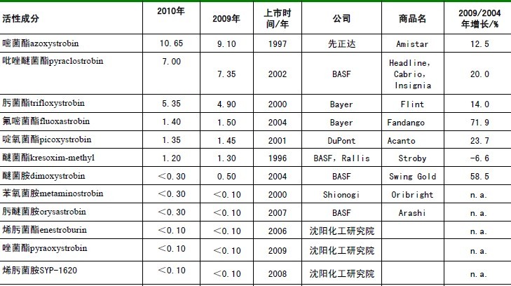 甲氧基丙烯酸酯類殺菌劑主要品種(銷售額單位:億美元)