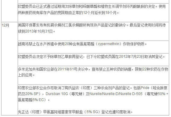 淘汰和禁用永遠是讓農藥商最關心和無奈的話題, 農藥禁用/限用/淘汰/重審大事記以警醒讀者:陳退新至,舊產品的淡出也意味著新品的契機。現將近年專利即將過期的農藥產品品種和市場情況逐一簡介給大家: