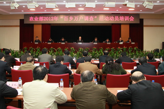 本網(wǎng)訊 2月7日,農(nóng)業(yè)部召開動員培訓(xùn)大會,啟動2012年“百鄉(xiāng)萬戶調(diào)查”活動。農(nóng)業(yè)部決定,從部系統(tǒng)選派123名機(jī)關(guān)干部和農(nóng)技人員(以機(jī)關(guān)干部為主),分成30個組從即日起深入27個省份開展為期1個月的駐鄉(xiāng)進(jìn)村入戶調(diào)查。部長韓長賦在會上要求,調(diào)查組同志要以積極熱情的態(tài)度、高度負(fù)責(zé)的精神、求真務(wù)實的作風(fēng),下到基層、走進(jìn)農(nóng)村、遍訪農(nóng)戶、廣查農(nóng)情,把中央強(qiáng)農(nóng)惠農(nóng)富農(nóng)政策送到千家萬戶,把農(nóng)業(yè)部門推動增糧增收的重點措施落到田間地頭,推動實現(xiàn)“穩(wěn)中求進(jìn)”總目標(biāo)、確保農(nóng)業(yè)農(nóng)村經(jīng)濟(jì)工作實現(xiàn)平穩(wěn)起步和良好開局。農(nóng)業(yè)部門要把干部深入基層調(diào)研、加強(qiáng)實踐鍛煉工作深入持久地開展下去,為鞏固發(fā)展農(nóng)業(yè)農(nóng)村經(jīng)濟(jì)好形勢提供動力和保證。