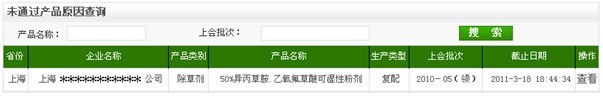 3、企業產品查詢:可瀏覽全國所有農藥企業的現有產品及批件號,同時也可根據需要針對性的查詢特定農藥企業所生產農藥產品的信息。