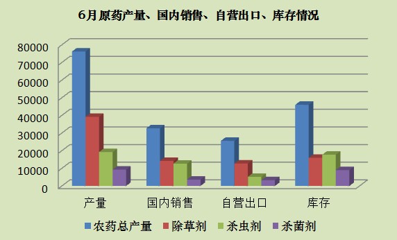 6月份農(nóng)藥總產(chǎn)量較5月下滑20.46%,同比略下降8.31%。國(guó)內(nèi)銷售環(huán)比下降16.69%,同比下降11.42%。各數(shù)據(jù)出現(xiàn)不同程度小幅度下降。