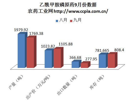 乙酰甲胺磷原藥較6、7月份產量有所增長,8月產量達到1979.92噸,9月份環比下降10.63%,產量呈小幅上漲趨勢,但漲幅趨緩。