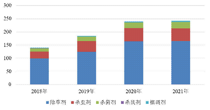 圖3 2018-2021年我國各類別農(nóng)藥出口量(萬噸)