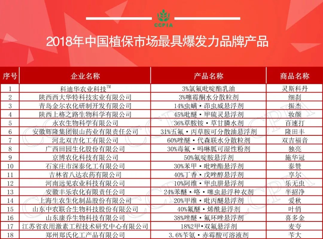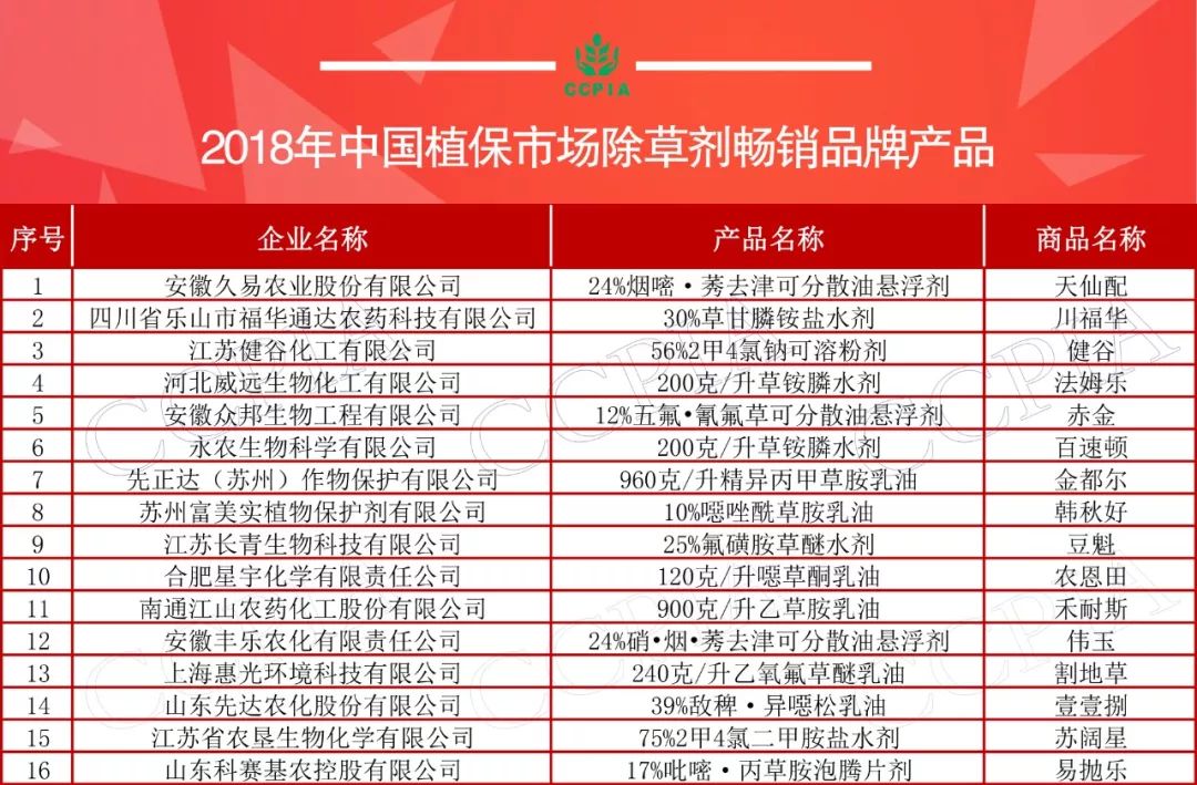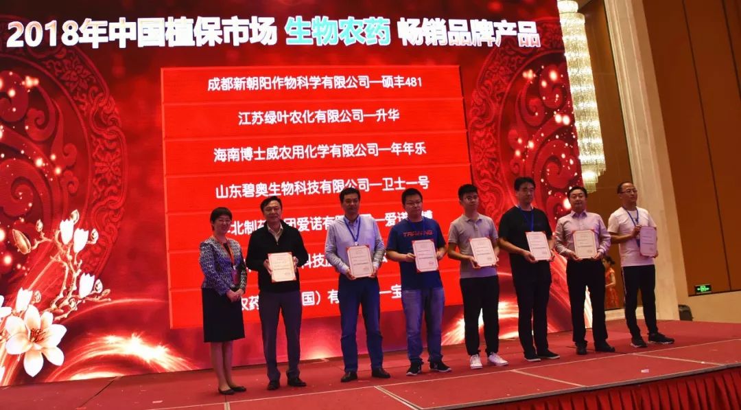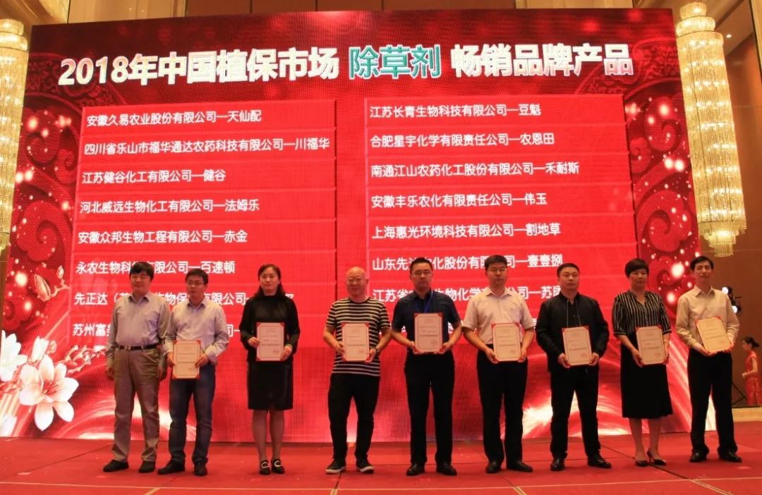 5月16日,安徽合肥,“2018年中國植保市場暢銷品牌產品”在第六屆農藥行業經濟運行分析會暨農化行業排行榜發布會上隆重揭曉。