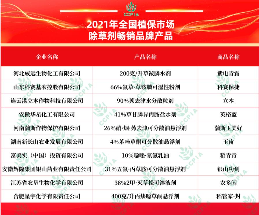 7月7日,浙江紹興,“2021年全國植保市場暢銷品牌產(chǎn)品”在第九屆農(nóng)藥行業(yè)經(jīng)濟運行分析會暨2022農(nóng)藥行業(yè)名單發(fā)布會上隆重揭曉。