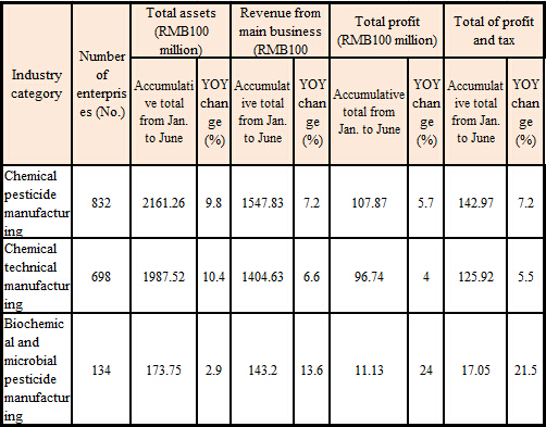 The data from the National Bureau of Statistics shows that in the first half of 2015, the national agrochemical industry’s main business revenue was RMB154.783 billion, up 7.2% year on year; the total profit was RMB10.787 billion, up 5.7% year on year. The total profit of chemical pesticides grew 4.0% year on year, while that of biochemical and microbial pesticides grew 24% year on year, a growth much bigger than that of chemical pesticides.