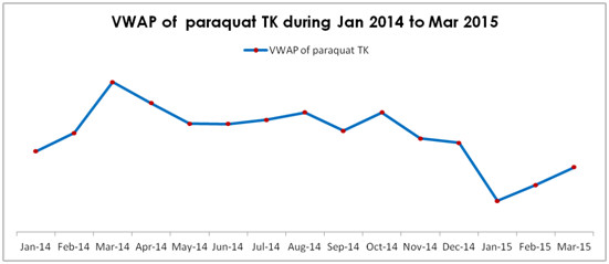 According to CCPIA Monthly Bulletin of Statistics of China Agrochemicals, transaction price of paraquat TK increased by $650 per tonne. It’s the second month that paraquat TK went through a price increasing trend.