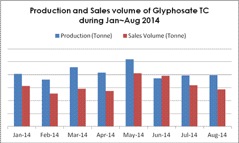 According to CCPIA Monthly Bulletin of Statistics of China Pesticides, in Aug, VWAP1 of glyphosate TC increased slightly by 3.5% MoM. With more than 20 manufacturers operating in Aug, the monthly output kept same level with that of Jul, while sales volume decreased by over 10% than MoM. When it came into Aug, overseas market of glyphosate began to warm up, however it seemed there was not much impact to domestic market.
