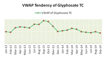 According to CCPIA Monthly Bulletin of Statistics of China Pesticides, Volume Weighted Average Price of Glyphosate TC declined by $209 per tonne. It seems that the upward tendency in August was only a short-lived phenomenon. The downward trend kept going on and the price of last month even reached the lowest point during the past 21 months.