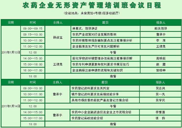 農藥企業無形資產管理培訓班會議日程